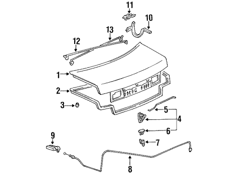 Genuine 1993 Toyota Camry parts are produced by Toyota with the official design and standards, thus they ensure a high quality throughout the production process. OEM parts are the ideal choice for people looking for new Trunk Lid & Components parts. With our competitive prices, we offer 1993 Toyota Camry Door Lock Cylinder, Trunk Lid Latch that fit tight budgets, while still including the manufacturer warranties, a hassle-free returns policy and quick shipping options.