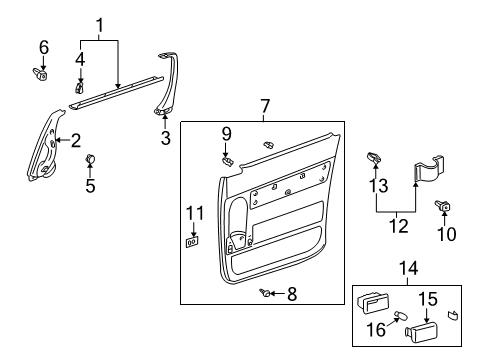 Genuine 2003 Toyota Sienna parts are produced by Toyota with the official design and standards, thus they ensure a high quality throughout the production process. OEM parts are the ideal choice for people looking for new Interior Trim - Side Door parts. With our competitive prices, we offer 2003 Toyota Sienna parts that fit tight budgets, while still including the manufacturer warranties, a hassle-free returns policy and quick shipping options.
